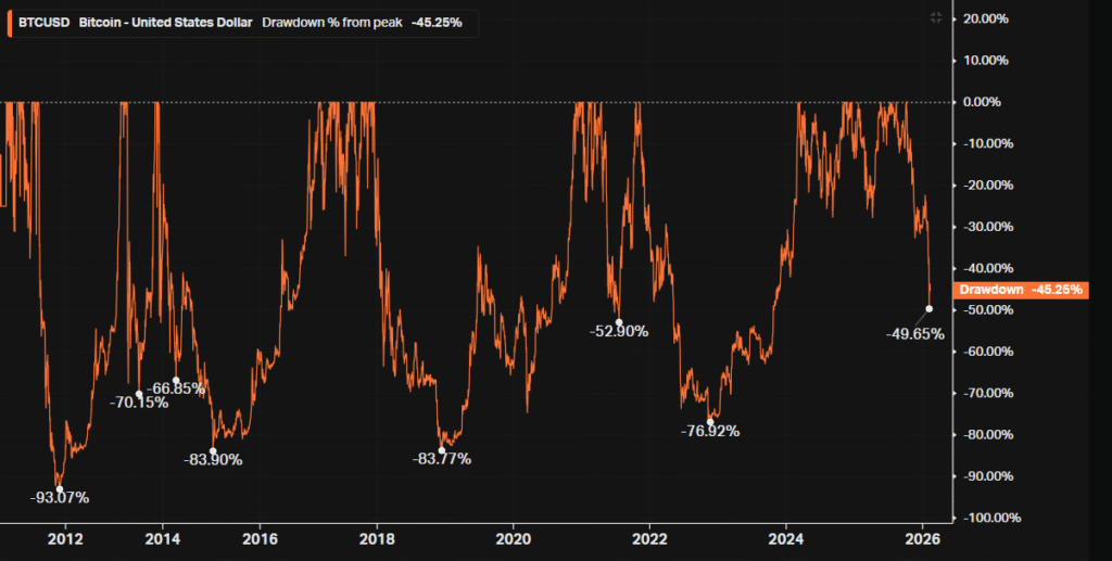 Esta é a 477ª vez que o Bitcoin é declarado morto pela mídia “especializada”. Comparado aos crashes anteriores, como os 84% de queda em 2018 ou os 77% em 2022, o recuo atual de 50% indica um ativo que, embora volátil, caminha para a estabilidade.