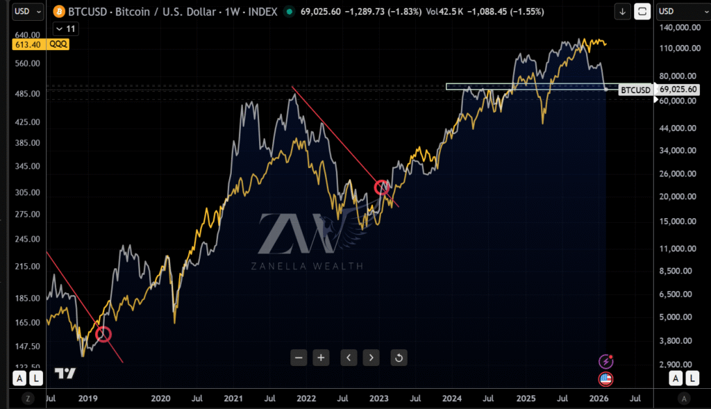 O Bitcoin deixou de ser um ativo plenamente descorrelacionado. Hoje, ele se comporta como um ativo maduro de Wall Street, reagindo às taxas de juros e às incertezas regulatórias com a mesma sensibilidade da Nasdaq.