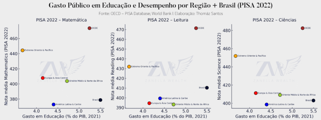O estado não é uma loja: Criticamos a ineficiência. Gastamos mais que a média global em educação, mas nossas notas no PISA seguem estagnadas e medíocres.