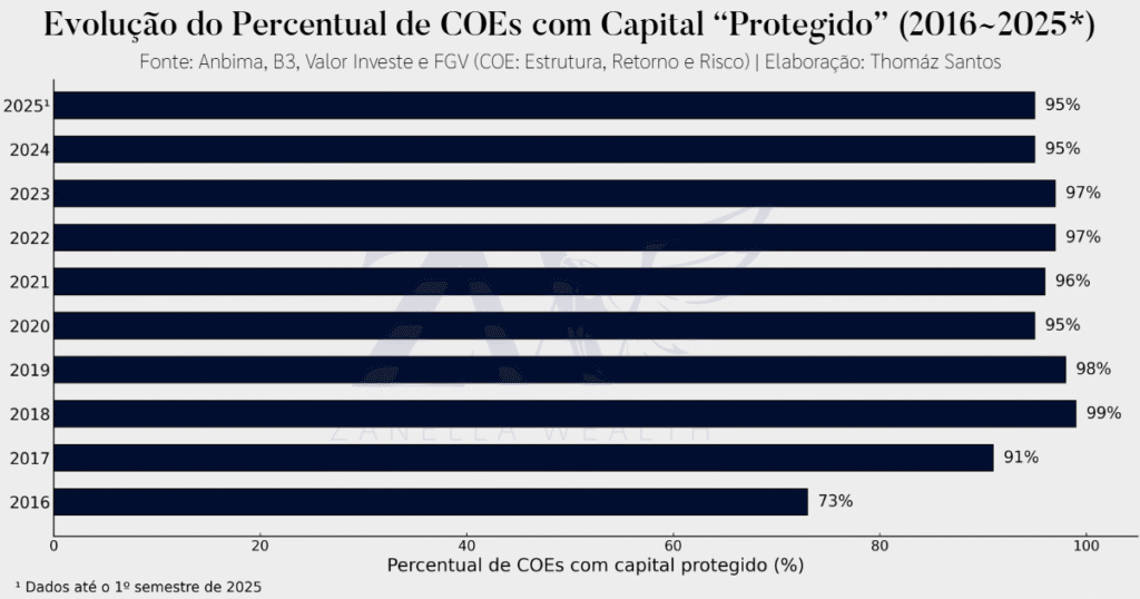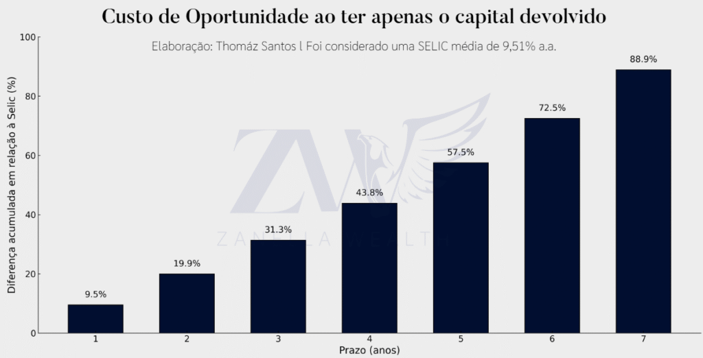 O engodo do capital protegido: Revelamos que um COE de 5 anos tem um custo de oportunidade de 57,5%. Você não perde o nominal, mas perde o que ganharia no CDI.