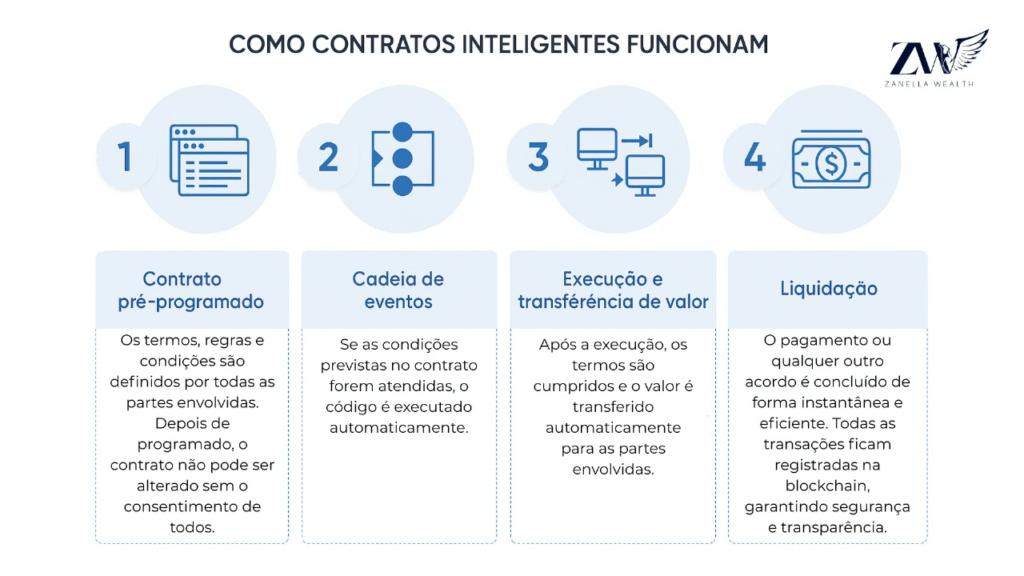 Contratos inteligentes: Educamos sobre a linguagem Solidity e como esses contratos substituem a confiança institucional pela confiança programada.