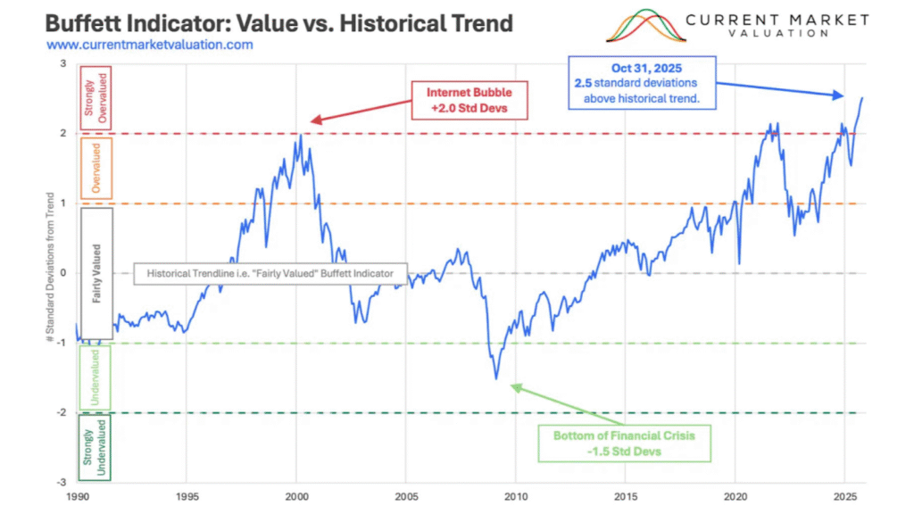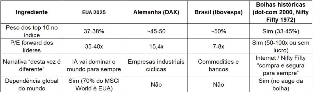 Bolha ou dominância? O Indicador Buffett atingiu 230% (nível recorde). As 10 maiores empresas dos EUA representam 25% de todo o mercado acionário mundial.