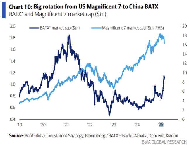 A rotação tecnológica: Vimos o fluxo saindo das Magnificent 7 em direção ao índice BATX (China), buscando múltiplos mais saudáveis após a retração chinesa de 2021.