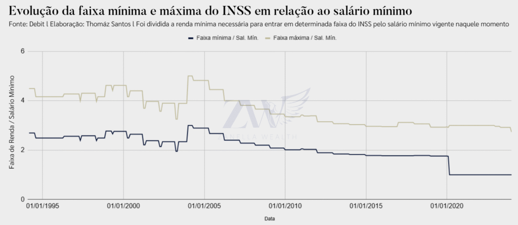 Crise previdenciária: A alíquota máxima do INSS saltou para 14%, incidindo sobre quem ganha apenas 2,7 salários mínimos. É um “esquema Ponzi institucionalizado”.