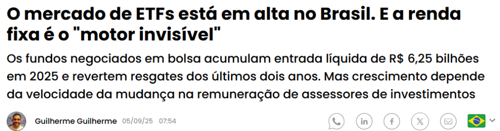 ETFs hedgeados: O volume de entrada em ETFs atingiu R$ 6,2 bilhões, com destaque para o SPXR11 (S&P 500 sem risco cambial).