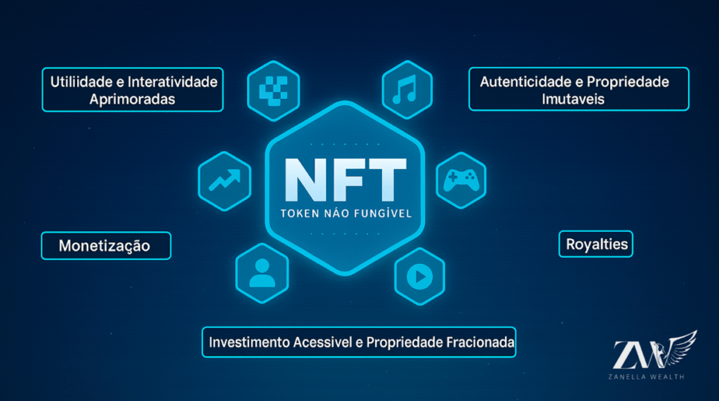 NFTs e negócios: Explicamos que NFTs são a infraestrutura da propriedade digital e royalties automáticos via padrões ERC-721 e ERC-1155.