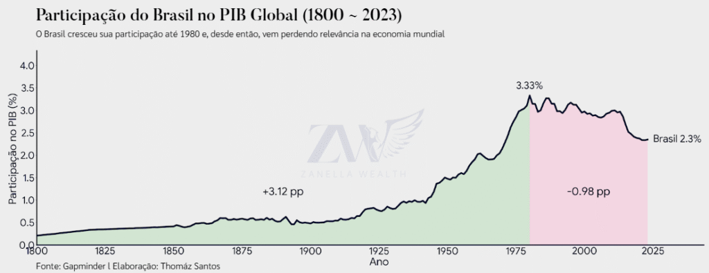Crescemos até 1980 nossa relevância na economia mundial, mas desde então, seguimos perdendo espaço.