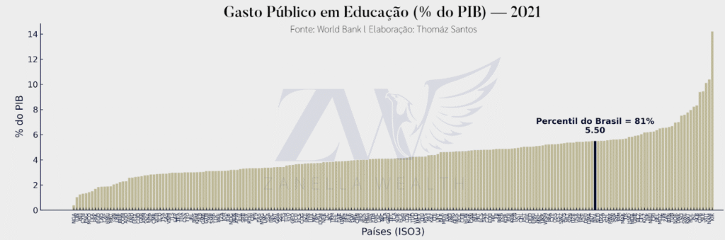 Por falar em nota, podemos afirmar que o Brasil gasta mais em educação do que a maioria dos países. Estamos claramente acima da média global e da própria América Latina, quando medidos os gastos em função do PIB.