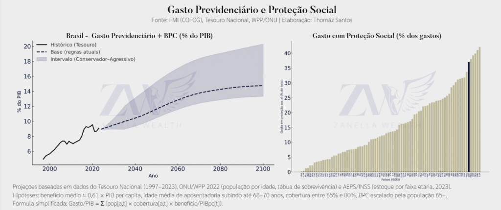 Por fim, ao falar em “gastos públicos”, é quase inevitável falar sobre INSS e benefícios sociais; e como já tratamos na carta do mês de maio, o Brasil perdeu a sua oportunidade de enriquecer antes de envelhecer.