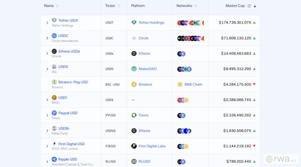 Essa escala vem acompanhada de forte concentração em dois emissores que dominam a maior parte do mercado: Tether (USDT) e Circle (USDC), juntas essas stablecoins representam mais de 79% da oferta circulante.