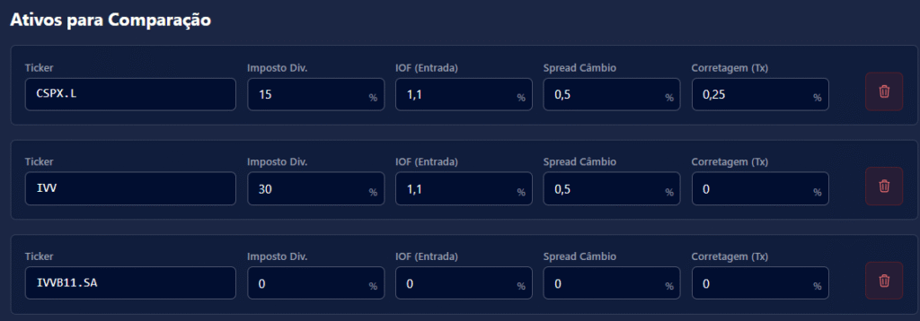 • IVV (EUA): O mais barato em taxa (0,03% ao ano), mas o prejuízo fiscal de 30% nos dividendos destrói essa vantagem econômica.