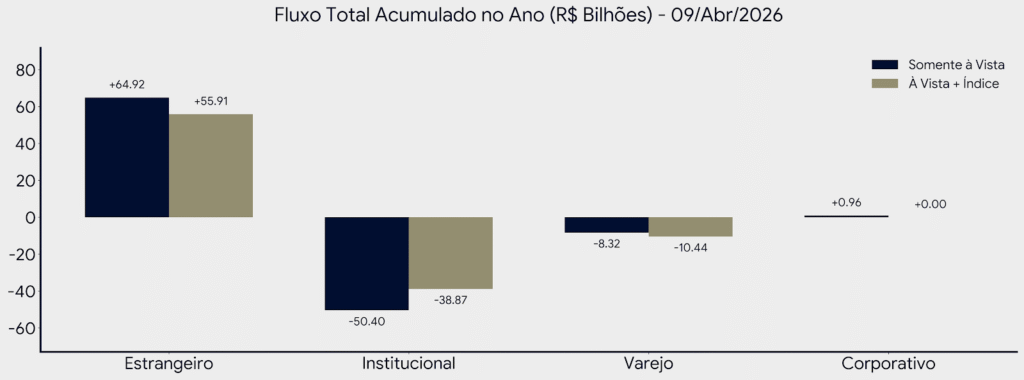 Enquanto o institucional local retira capital (-50,40 bi), antecipando a necessidade de liquidez e proteção, o estrangeiro especula. O investidor que possui milhões em conta deve seguir a lógica da preservação, comprando proteção (dólar e ativos offshore) enquanto o mercado oferece um desconto generoso.